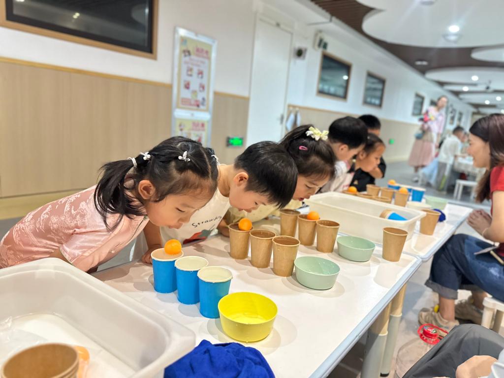 当天活动丰富多样。通过观看PPT,幼儿初步知晓国庆节为何是十月一日,了解中秋国庆来历。接着的游园活动精彩纷呈:中1班的“飞机画”,幼儿合作完成粘贴画,锻炼动手与协作能力;“仙人吹气”游戏,两人比拼吹乒乓球,增添趣味。中2班的“桂花茶”,幼儿品尝桂花茶,感受秋意;“点朱砂”环节,幼儿在额间点朱砂,拍照留念,体验传统韵味。中3班的“长卷画”,幼儿合作创意画,展现国庆氛围;“运月饼(体游)”,幼儿推轮胎过障碍,增强体能。中4班的“滚铁环”,幼儿操控铁环,感受传统游戏魅力;“看电影”,幼儿围坐看爱国电影,接受爱国教育。中5班的“捞月亮”,幼儿挑战单手撑地套圈,锻炼平衡与协调;“唱红歌”,幼儿手持国旗,唱响爱国旋律。中6班的“我爱您祖国拍照”,幼儿创意摆拍,留下爱国瞬间;“兔子套圈”,幼儿尝试套圈,收获欢乐。