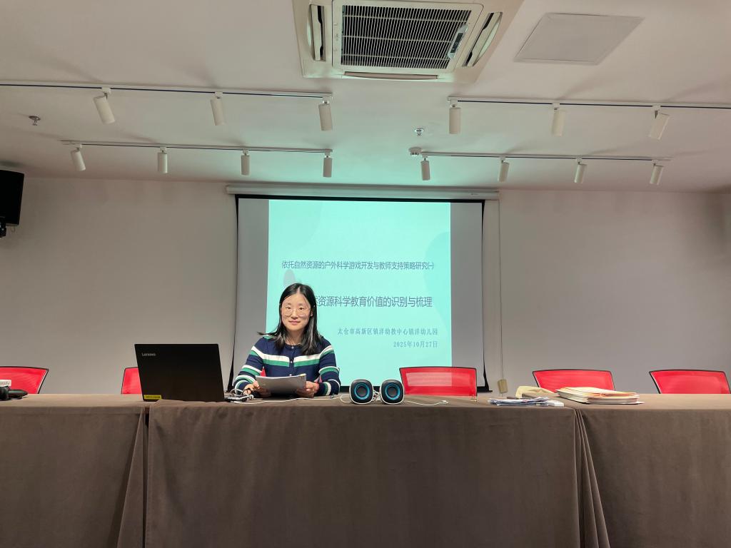 2025年10月27日,太仓市高新区镇洋幼教中心镇洋幼儿园在大会议室开展“依托自然资源的户外科学游戏开发与教师支持策略研究(一)”理论培训活动,本次活动由潘瑜老师主持,全体教师悉数参与。