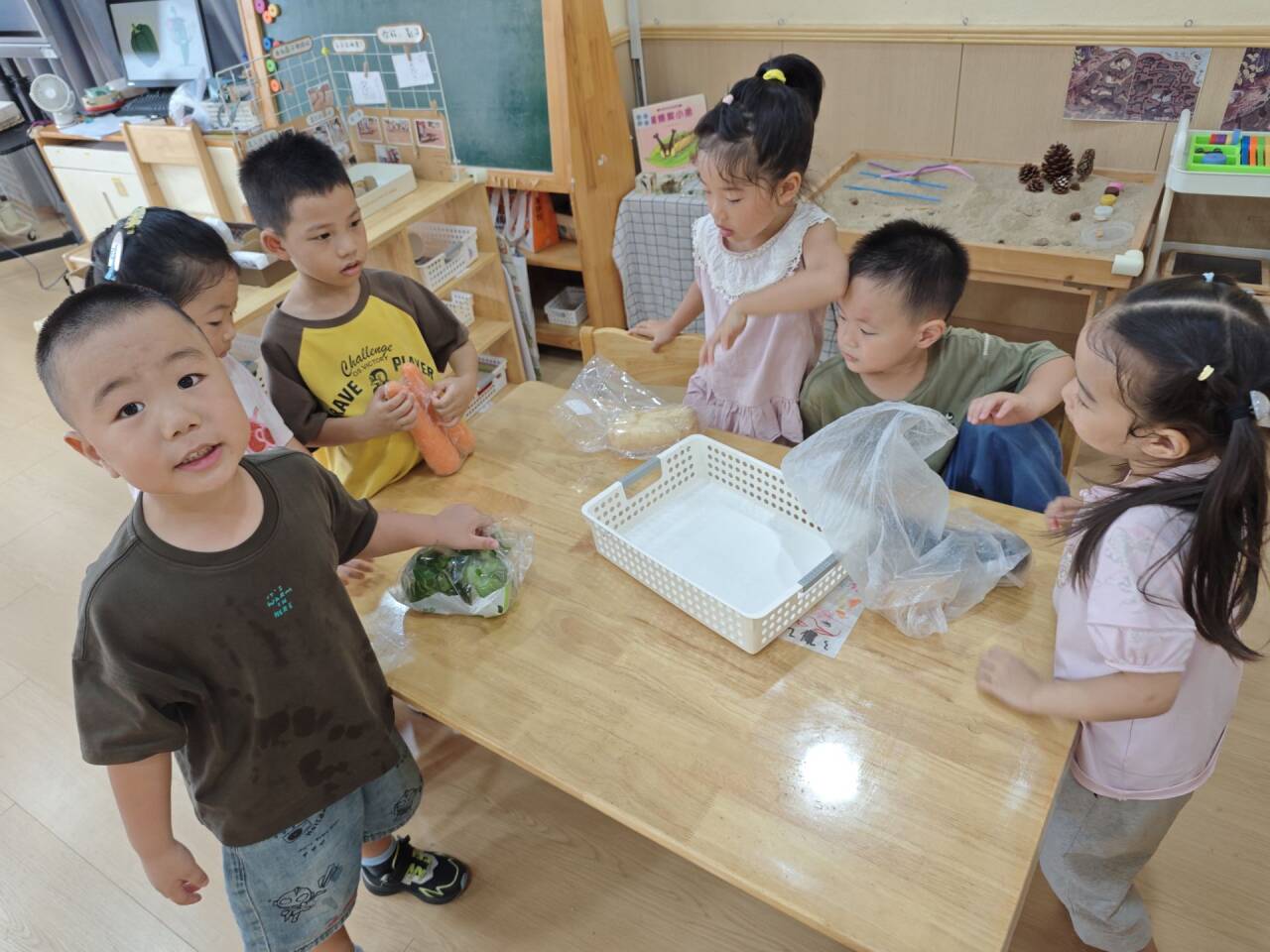 在孩子们与蔬菜的亲密接触中,不仅发现了蔬菜的多样特征,更感受到了探索的乐趣。