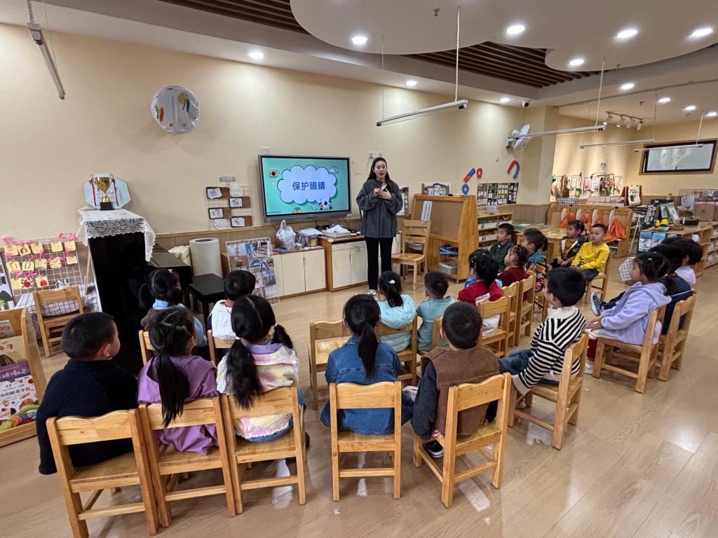 林苇彤妈妈问“怎么保护眼睛”,有的分享“少看手机和电视”“多看看外面”,课堂氛围热烈。家长助教活动既发挥了家长作用,又为孩子们带来了课本外的实用知识,丰富幼儿成长体验。