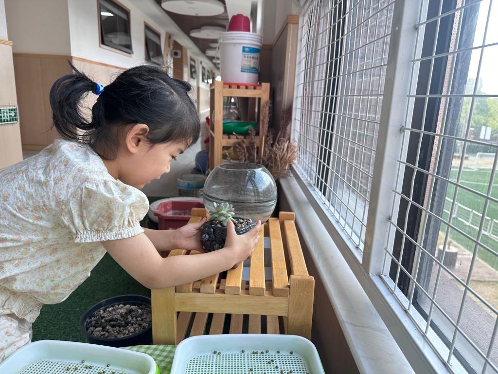 中3班的教室里再次充满了孩子们的欢声笑语。开学第一周,一切都是崭新的开始,孩子们带着成长的喜悦回到了熟悉的大家庭,分享快乐,共筑新梦。孩子们分享了旅途见闻,分享了快乐时光:“我去了大海边,捡到了好多漂亮的贝壳!”“我和爸爸妈妈爬了很高的山,从山顶上看下去,房子变得好小!”开学第一天,班级里就举办了一场别开生面的“假期旅行分享会”。孩子们争先恐后地举起小手,用稚嫩而兴奋的语言描述着假期里的所见所闻。孩子们不仅带回了精彩的故事,还从家中带来了各式各样的“绿色小伙伴”。一盆盆可爱的绿萝、顽强的多肉、葱郁的蒜苗被小心翼翼地安放在班级的自然角。孩子们自豪地向大家介绍自己带来的植物,并约定要一起做称职的“绿色小卫士”,负责浇水、晒太阳,观察它们的生长变化。这片由孩子们亲手建立的新绿,不仅美化了教室环境,更在他们心中种下了一份责任与对自然的热爱。升入中班,意味着更大的自主权和责任感。为了帮助孩子们更好地熟悉新环境,老师带领大家开展了一项特别有意义的活动——一起张贴班级物品的新标记。水杯架、毛巾架、玩具柜、图书区……每一个位置都贴上了清晰、可爱的图案标识。孩子们亲手撕下背胶,认真地将标记贴在指定位置。通过亲手参与环境创设,孩子们迅速记住了物品的“家”在哪里,对班级的归属感也愈发强烈,自我管理的意识也在不知不觉中悄然萌芽。