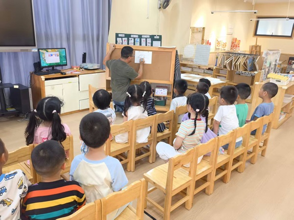 2025年10月17日上午9:30,太仓市高新区镇洋幼教中心镇洋幼儿园中4班在活动室内开展10月家长助教活动。本次活动由孙翌阳爸爸主持,主要向幼儿介绍了自己的职业——设计师。