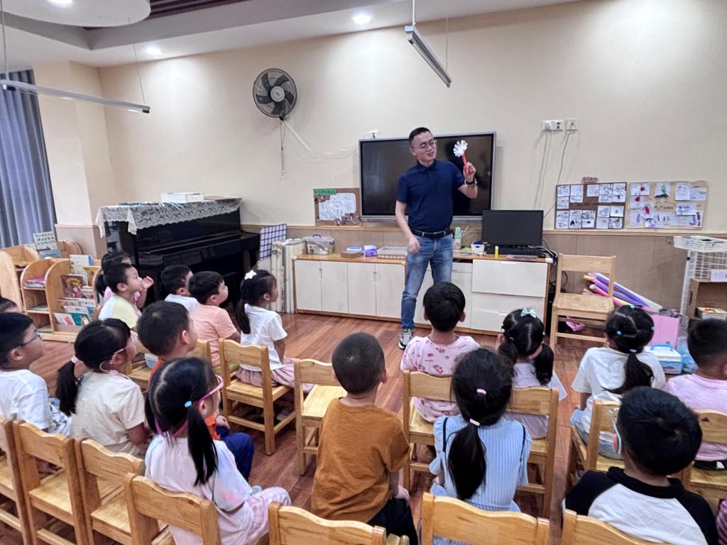 活动中,吴沐言爸爸以亲切的讲述和细致的演示,为孩子们展示了向日葵的制作材料,耐心讲解花杆粘贴技巧与表情绘制方法。通过“怎么把绿色的彩纸变成花杆?”“怎样让笑脸更可爱?”等趣味提问,充分调动孩子们的积极性,现场小手高举、笑声不断。手工环节中,他悉心指导每位孩子,尤其关注动作稍慢的小朋友,温柔鼓励、亲手协助,让每个孩子都顺利完成自己的作品。活动最后,吴沐言爸爸还为孩子们送上了精心准备的小礼物与趣味贴纸,让这份创造的快乐从课堂延续到生活~