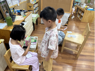 到了“药店”,轩轩把药方递给“药剂师”,说:“药剂师,我来取药,这是医生开的药方。”“药剂师”看了看药方,然后从“药架”上拿了对应的“药品”,递给轩轩,轩轩接过“药品”,又道了谢,然后拿着“药”,像是完成了一件大事一样,离开了“药店”。