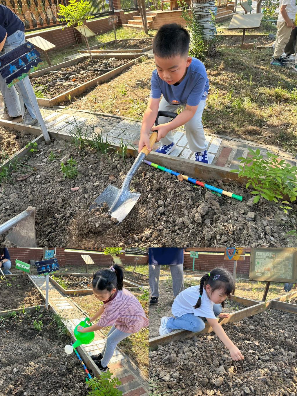 新学期伊始,幼儿园的种植园迎来了新的生机。我们大班的孩子们开启了种植之旅。诺诺、沐沐、萱萱、乐一、亦博、琪琪、宸宸、轩轩等小朋友积极参与,亲手翻土、播种、浇水,体验了从无到有的种植过程。