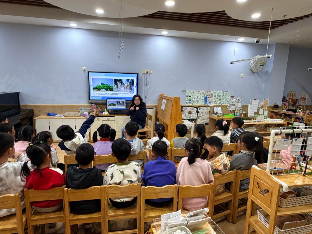 活动中,许青芃小朋友妈妈向孩子们介绍了自己的职业——一名太仓图书馆的管理员。她用生动形象的语言带领孩子们进行了一场“云端”游览太仓图书馆之旅。当气势恢宏的图书馆外观、明亮整洁的阅览室、色彩斑斓的少儿阅读区以及一排排整齐如士兵列队般的书架呈现在大屏幕上时,孩子们不时发出“哇”的惊叹声。