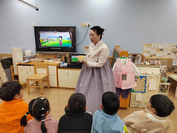 2025年11月17日下午,镇洋幼儿园大6班的“携手护航 为爱童行”活动如期举行,孩子们满怀期待地迎来了一场别开生面的文化之旅。本次活动特别邀请了李佳玹妈妈走进课堂,她以生动的讲解和丰富的展示,带领孩子们走进了能歌善舞、热情好感的朝鲜族文化世界。