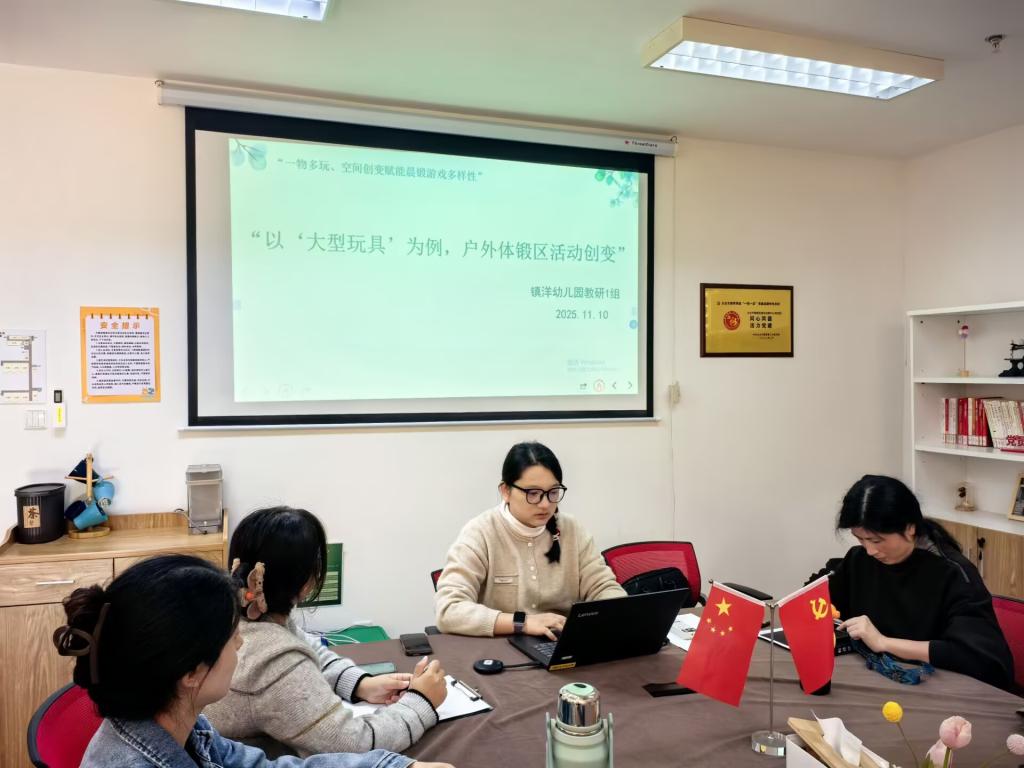 2025 年 11 月 10 日,太仓市高新区镇洋幼教中心镇洋幼儿园教研一组开展了 “一物多玩、空间创变赋能晨锻游戏多样性” 系列活动第四场 —— 以 “大型玩具” 为例的户外体锻区活动创变研讨。本次活动由王姗姗老师主持,聚焦大型玩具现有问题,通过实操改造推动游戏质量升级。