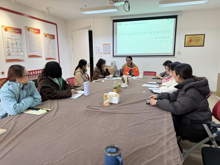 2025 年 11 月 26日,太仓市高新区镇洋幼教中心镇洋幼儿园教研一组开展了 “一物多玩、空间创变赋能晨锻游戏多样性” 系列活动第五场 —— 户外活动区游戏实践研讨。本次活动由王姗姗老师主持,。活动聚焦户外活动区实践优化,通过班级成果分享、规划图迭代研讨,推动晨锻游戏提质增效。